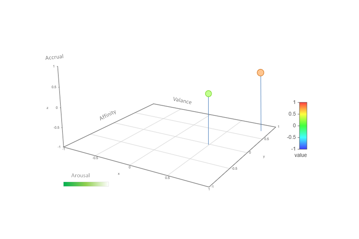The sentiment space is defined as k = 4 Dimensional Vector Space, which is a Linear Space of 4 bases : { Valance, Arousal, Affinity and Accrual }.